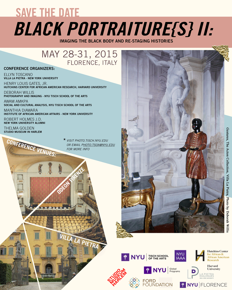 Black Portraitures II: Imaging the Black Body and Re-Staging Histories (Florence, Italy, 28-31 May 2015) is the sixth in a series of highly successful conferences staged by New York University (NYU) in collaboration with Harvard University’s Hutchins Center for African and African-American Research.