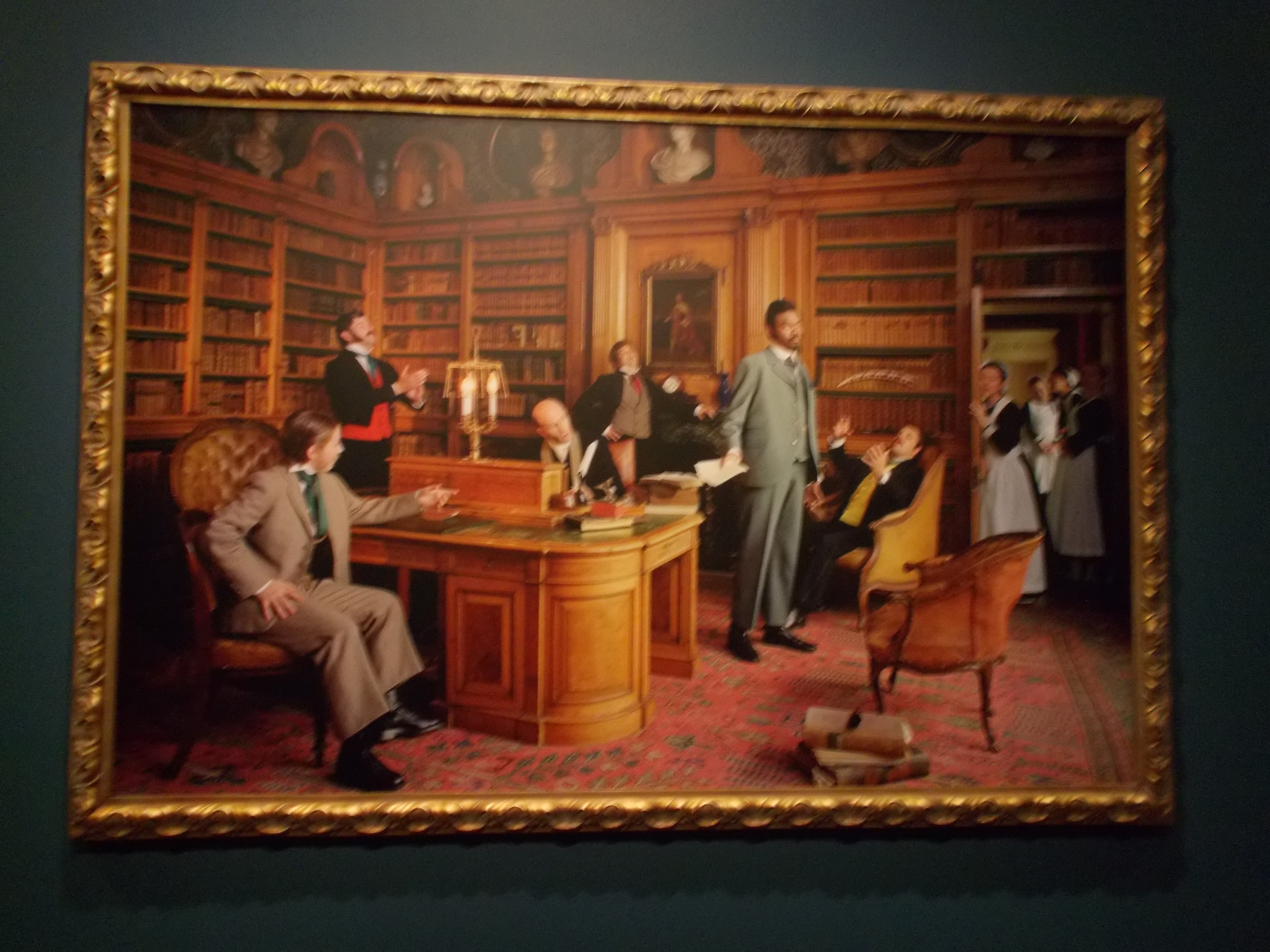 What is immediately noticeable about Shonibare’s self-representation as an elite and leisured Victorian dandy is his positionality at the heart of each image, made more noticeable by only selecting white sitters to perform the supporting (and ‘subordinated’) roles of his friends, lovers, attendants, and servants positioned in the more marginal and ‘parergonal’ spaces.