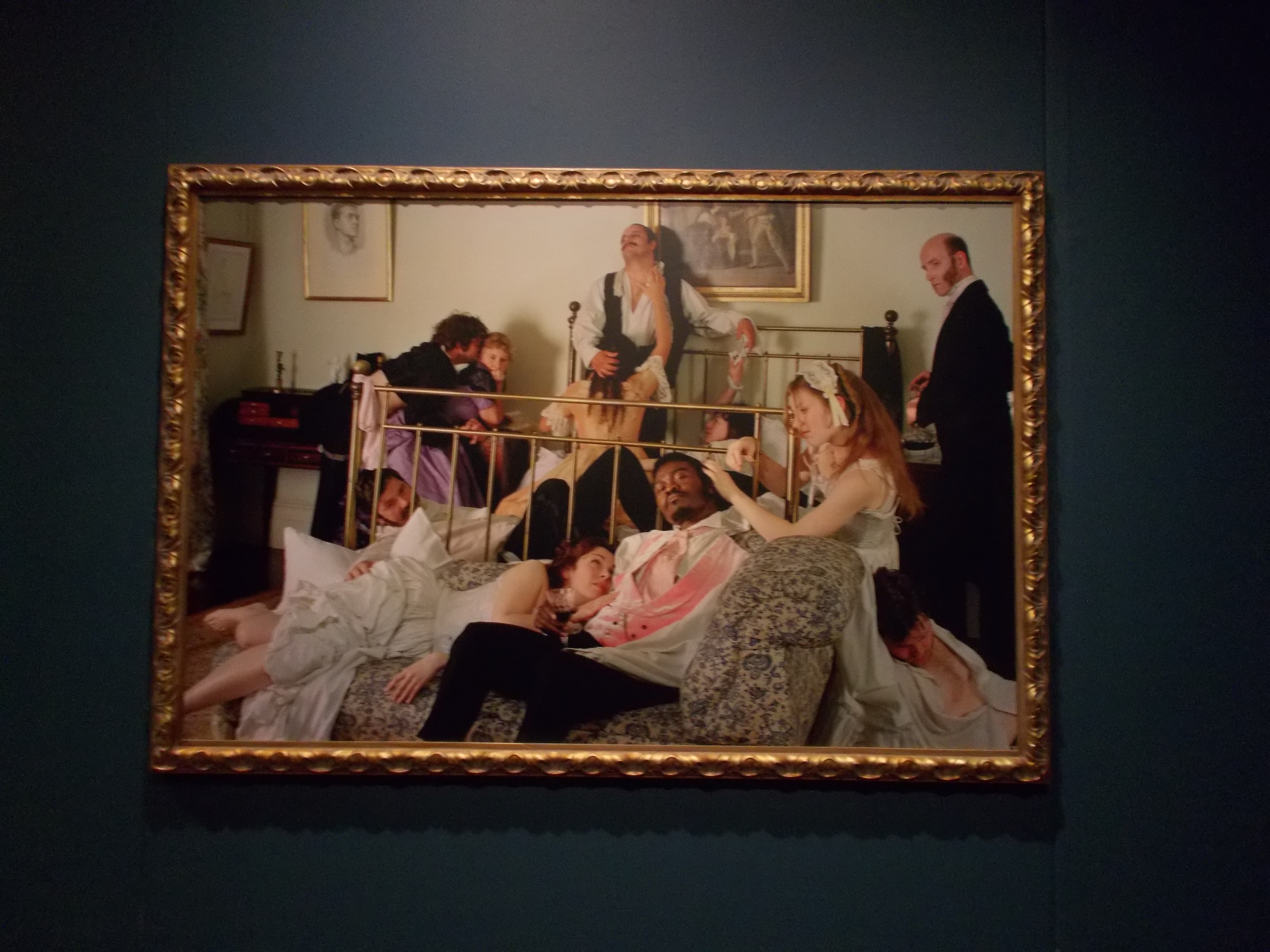 From a socio-spatial perspective, Shonibare is also considered to be interrogating racial stereotypes by “using tactics of displacement and replacement – such as shifting the white male to the role of subaltern or inserting himself in a central role as a black dandy – so that there is a critical collusion of cultures” (Badinella and Chong, 2013: 25)