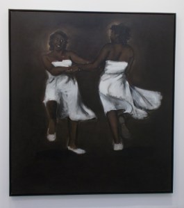 Although I have been aware of this artist since she was nominated for the Turner Prize in 2013, I had only previously seen a small number of individual paintings by her in group displays at Tate Britain (where her works ’10pm Saturday’ (2012) and The Generosity (2010) are part of the British Art Collection) and Leeds Art Gallery (where the beautiful seascape with two figures Condor and the Mole (2011) was shown in the Arts Council touring exhibition, One Day, Something Happens: Paintings of People, 6 March-24 May 2015) . For this reason it was fascinating to spend time delving deeper into her portfolio, appraising recently completed paintings, and learning more about Yiadom-Boakye’s artistic practice via this solo exhibition.