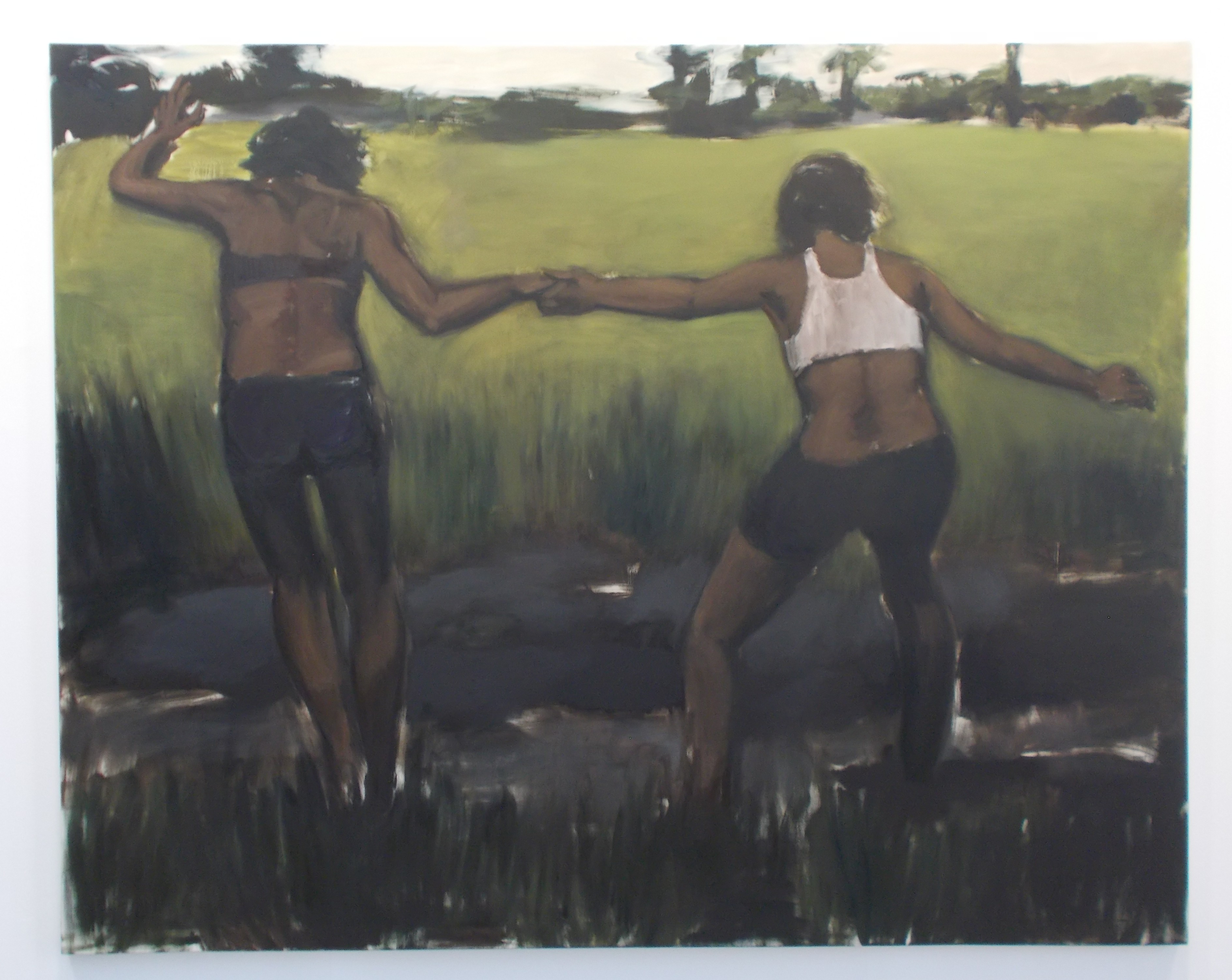 One of the largest and most striking paintings in the east wing of the gallery that overlooks the 2015 Selgas/Cano Pavilion outside is Firefly (2011) – a dynamic scene of three boys running together along a beach, painted in a soft natural palette of grey, green, brown and beige. When describing this piece, and others depicting young people, in an artist’s statement for the Arts Council Collection in 2014 Lynette Yiadom-Boakye wrote: