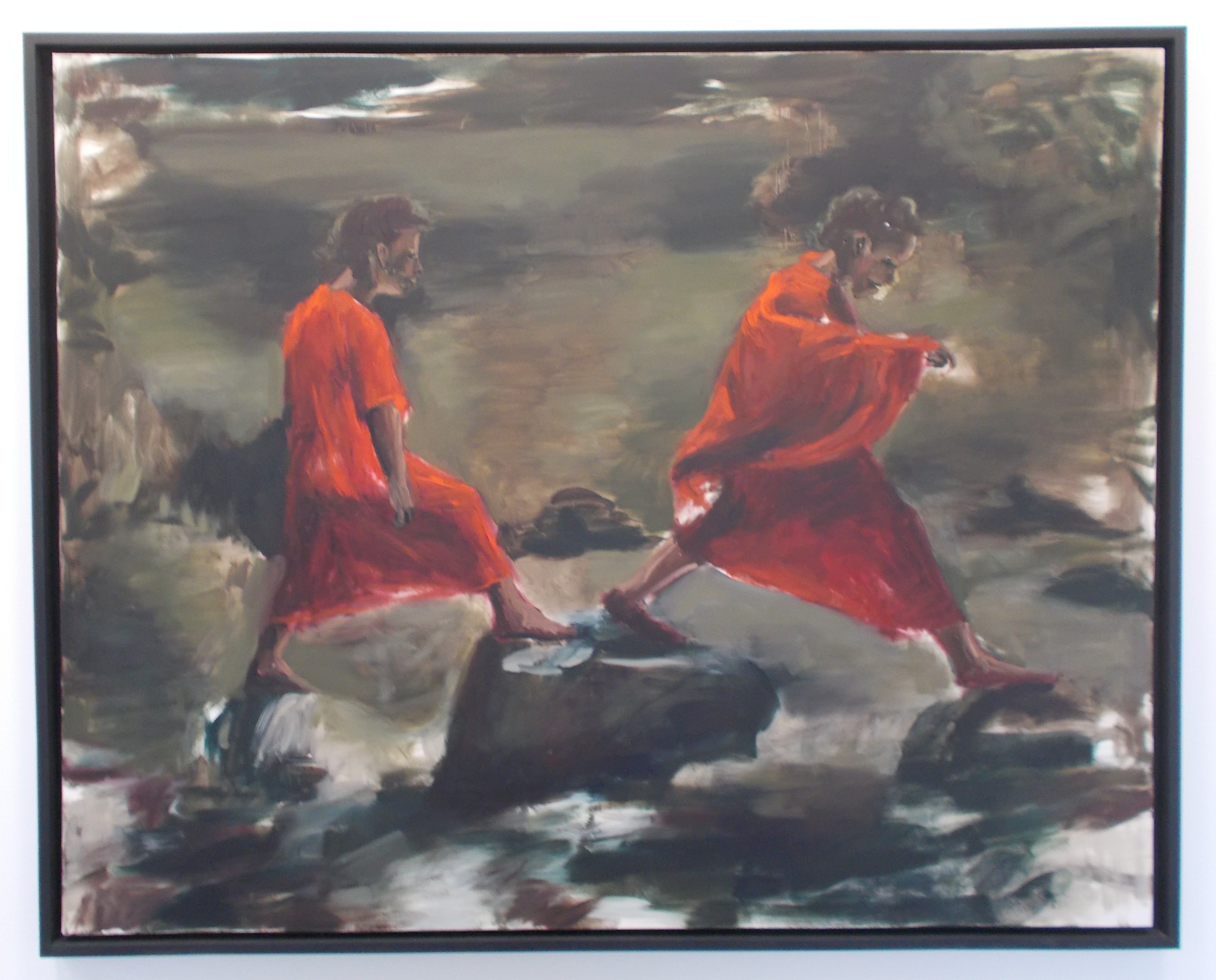 The exhibition opens with a selection of individual portraits of young men and women – some facing out towards the viewer, but most painted at oblique angles with averted eyes looking away into the distance, or with their backs completely turned as if to avoid the onlooker’s gaze altogether.