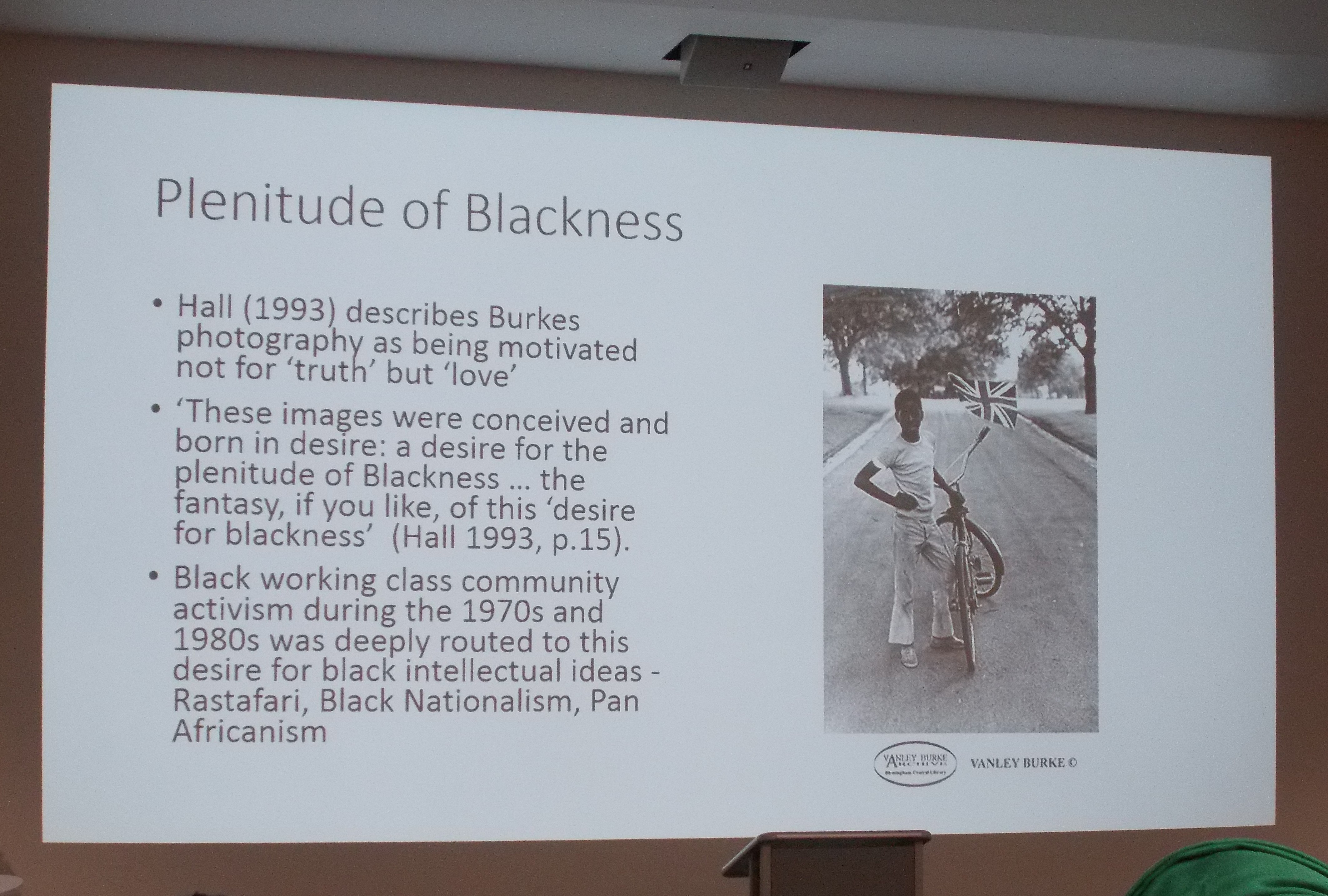 Dr Lisa Palmer (Birmingham City University) presented a paper about the archive of documentary photographer Vanley Burke, and discussed his life as an arts activist and archivist with reference to Walter Rodney’s political consciousness speeches and “groundings” about the role of the “guerilla intellectual.” Vanley Burke’s photographic capture and archiving of black lived experiences in Birmingham, the UK, and beyond, was described as a form of “guerilla archiving” pursued out of a desire to achieve what Stuart Hall refers to as the “plenitude of Blackness.”
