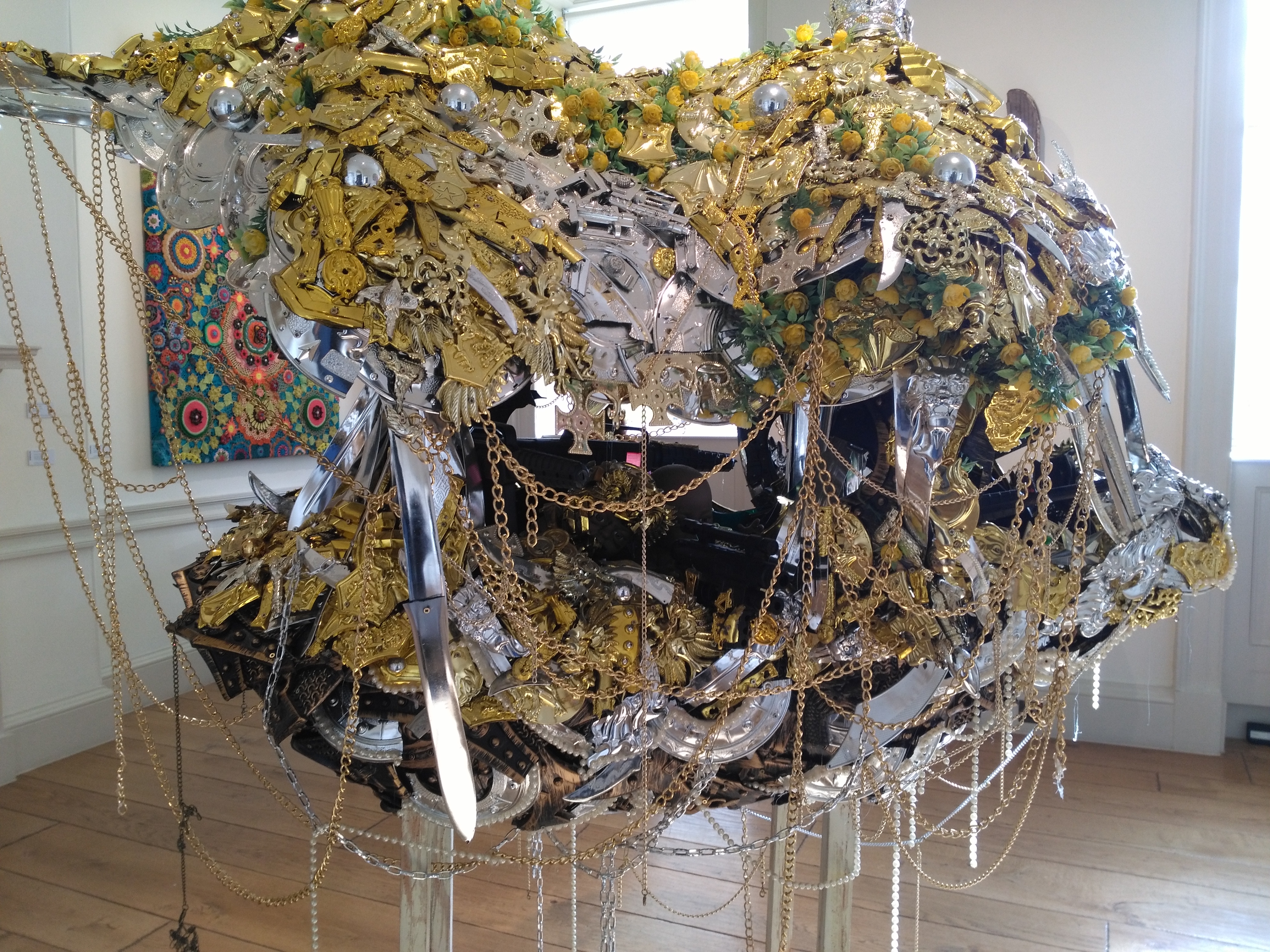 Among my personal highlights were the selection of wall-mounted offrandes de couleurs (“offerings” made from delicate fragments of coloured fabric) by the internationally renowned textile artist Abdoulaye Konaté (b. 1953, Diré, Mali) – including his stunning composition in black and red, “Gouttes Rouges” (2019).