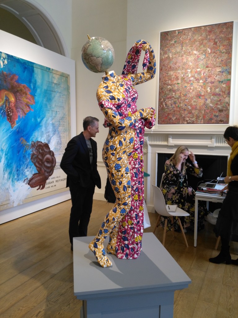 Similarly to the 1:54 FORUM, the art fair’s exhibition spaces at Somerset House gave prominence to established women artists in its free-to-view galleries – including a stunning presentation of recent sculptural installations and photographic stills of performances created by Johannesburg-based contemporary artist Mary Sibande (b. 1982, Barberton, South Africa), titled “I Came Apart at the Seams” and shown throughout the Terrace Rooms near the main entrance.
