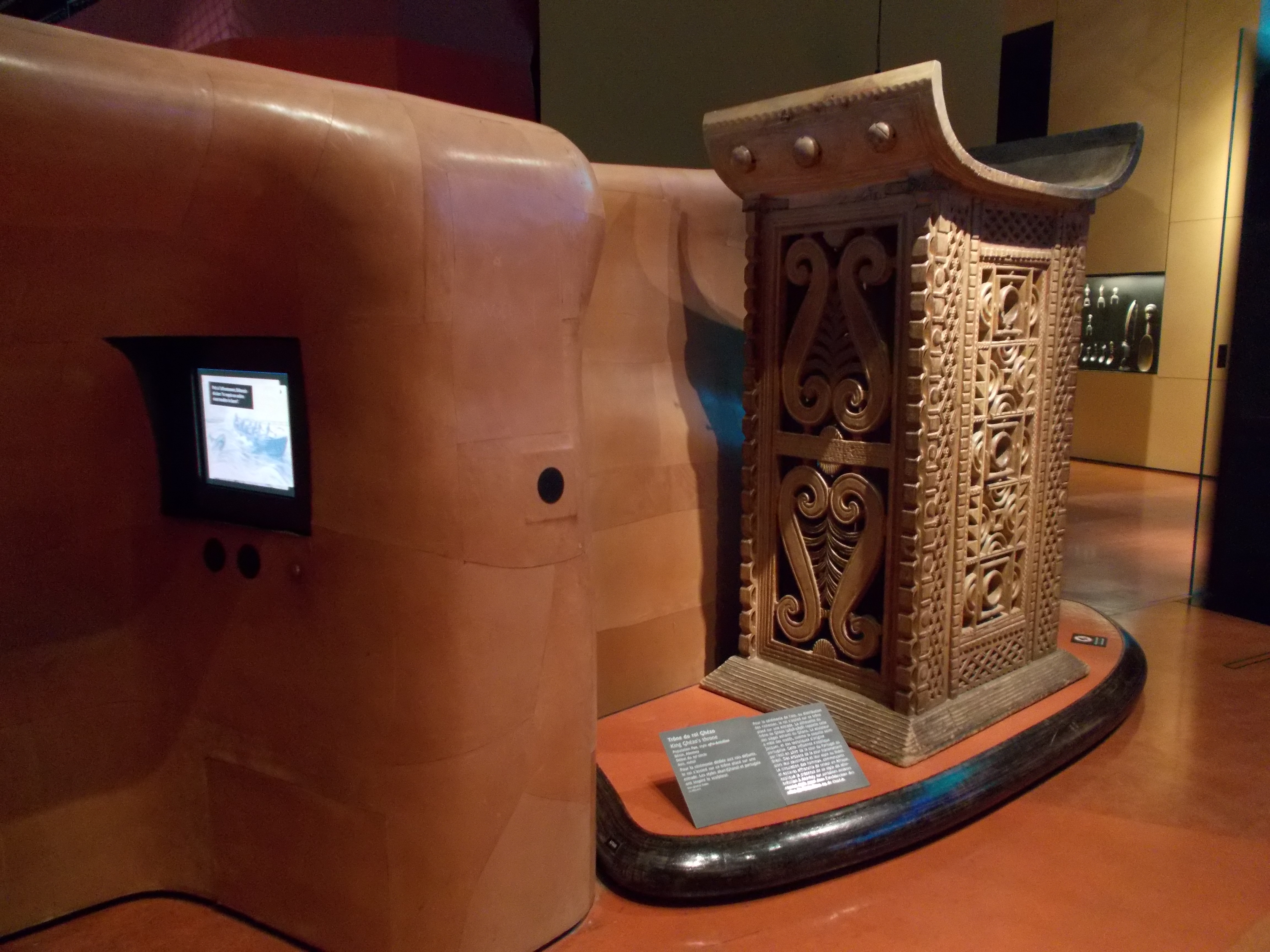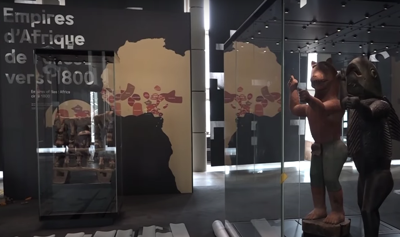Some of the most notable items on display include: a collection of decorative 19th century bas-reliefs from the former Royal Palace of Abomey, which were stolen during the French colonial siege of 1892; a group of anthropo-zoomorphic sculptural figures known as the ‘Royal Statues of Dahomey’; and two wood and metal ceremonial thrones, originally created in the 19th century for King Ghézo and King Glèlè, previously displayed in the Africa section at the Musée du quai Branly-Jacques Chirac, Paris.