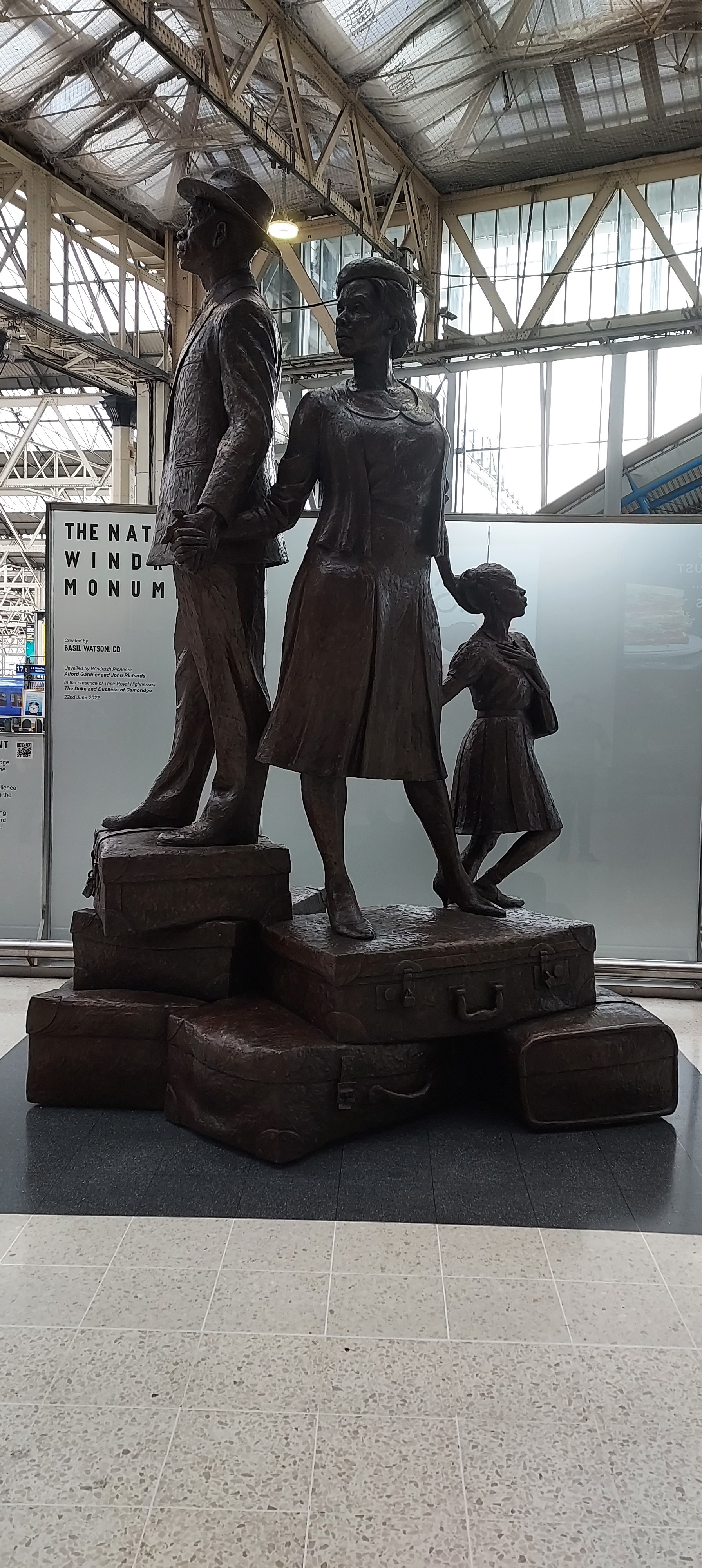 The public launch took place on a day officially designated in the UK as “Windrush Day.” This annual occasion commemorates the arrival of the Empire Windrush passenger ship at Tilbury docks in June 1948, and marks an important migration journey within the broader dynamics and continuities of West Indians being encouraged to settle and work in the UK at the invitation of the British government – a movement that also included the return of many former armed forces and auxiliary services personnel who had served in Europe during the Second World War. In the decades since this era, the date is now recognised as symbolising a pivotal moment in the chronology of flows and interdependencies linking the islands, nations and peoples of the Caribbean region to the British Isles over many centuries. This wider framing relates specifically to histories of Empire; to the UK’s imperialist past, undergirded by the brutalities and traumas of human trafficking throughout the Atlantic world, plantation enslavement, and colonial exploitation; and to the re-calibrated, post-colonial alignments of the 20th century, articulated via the Commonwealth. Additionally, this date in the cultural calendar, and the presence of a new monument commemorating Caribbean migration histories at the heart of one of London’s busiest rail terminals, opens up opportunities to continually acknowledge the multiple and cumulative contributions to British cultural life and society advanced and influenced by people of colour with Caribbean heritage – not only in relation to the individuals and families who arrived as part of the Windrush generation, but also to their forebears and to successive descendants of Caribbean diasporans born in the UK: positively influencing and adding value to artistic, linguistic, scientific, technological, literary, socio-economic, faith-related, political and legislative spheres and sectors with/in multicultural Britain.