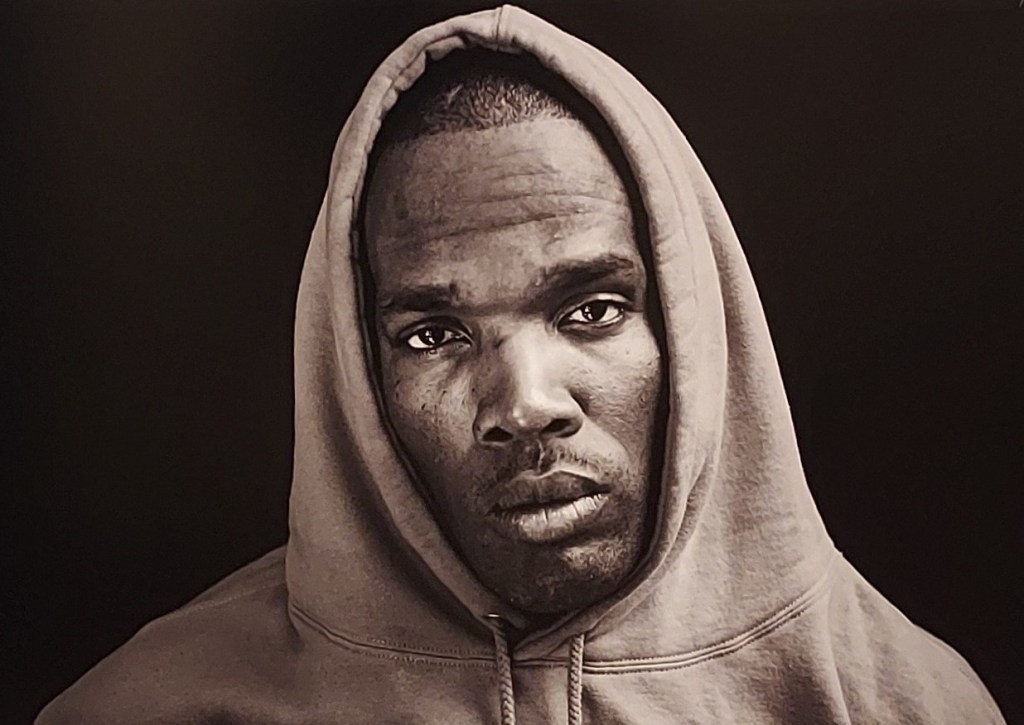 As a documentary photographer and lens-based multimedia artist, who was raised in Kenya and also lived in Rwanda and South Africa prior to moving to the USA, Tracy Keza’s oeuvre focuses on the creation of powerful, close-up, single-figure portraiture of sitters with African heritage. Her assemblage enables viewers to connect with aspects of the sitters’ personalities, identities, and life stories through the very direct eye-contact of the larger-than-life-size, centrally-positioned, self-styled headshots of her participants – printed and displayed in black and white.
