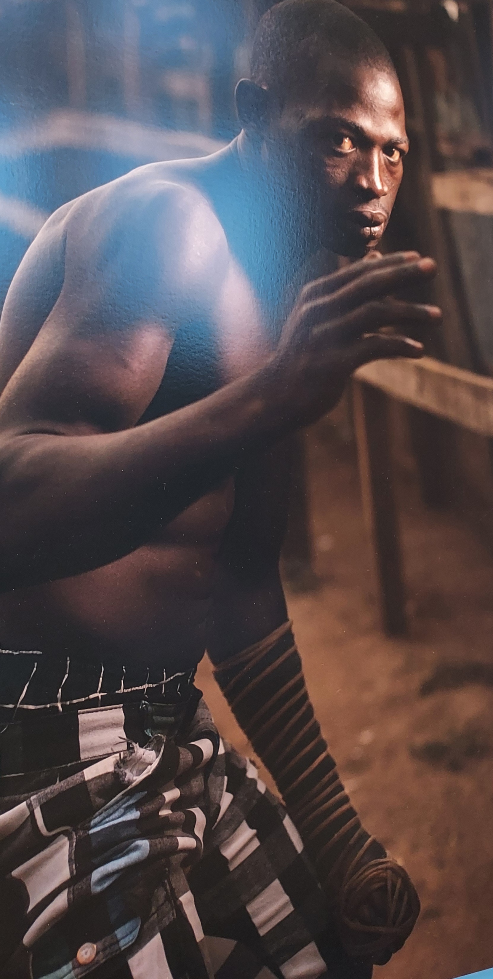 The last two images in this selection were part of Nigerian photographer Ayobami Ogungbe’s series of boxers’ portraits, taken during a Hausa ‘Dambe’ boxing tournament in Lagos. The athletic stances of each competitor enabled the photographer to focus on the fighters’ raised and heavily bandaged hands, their collections of necklaces and amulets, their facial markings and their fearlessly combative expressions.