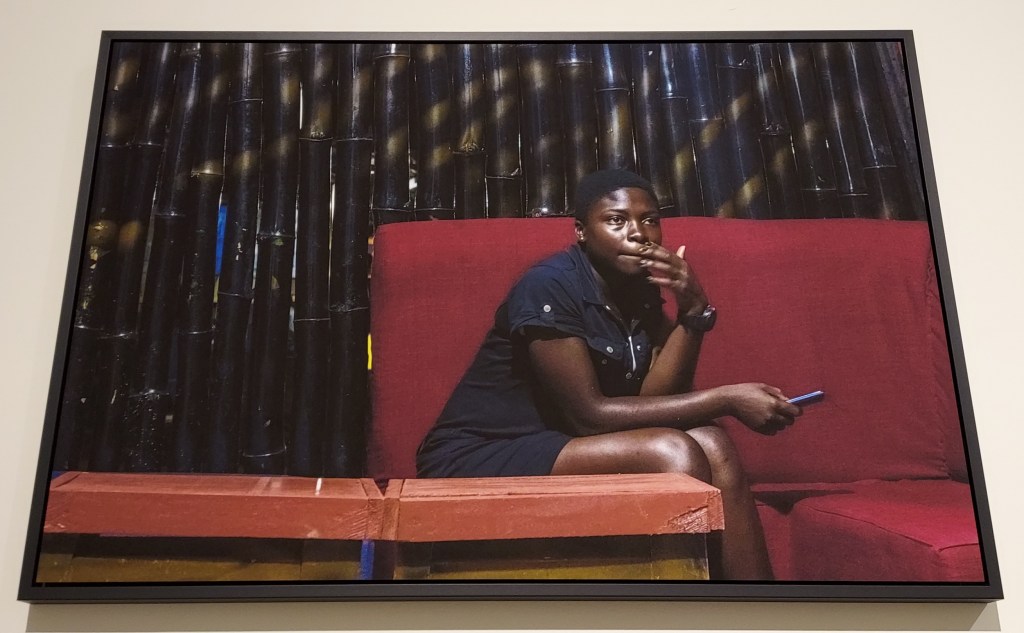 A small selection of eye-catching images of the rural Lolodorf landscape and scenes of everyday village life in Bikoka, taken by Cameroonian photographer Yvon Ngassam (b. 1982, Bangangte), prompted many visitors – myself included – to pause for a long time in this busy, recessed seating area to view the photography, read the project’s panel description and reflect on the social, cultural, educational and geographical context to this engaging series of lens-based visual narratives.