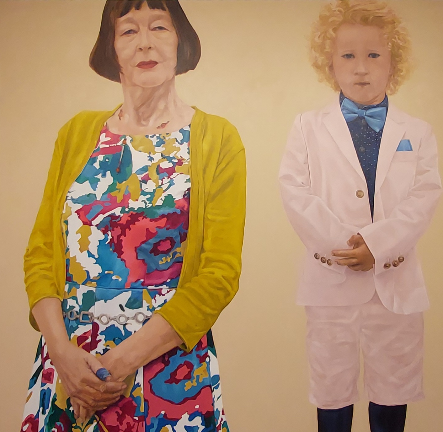 As an admirer of Palmer’s visual storytelling, I was very pleased to write a short interpretation narrative about Standing Still – appraising and analysing the individual, paired and grouped representations of the artist’s family members and wider kinship network depicted at important social gatherings; including a wedding reception and an informal intergenerational get-together held outdoors during mid-summer (see, for example, the diptych Late Evening, 2022).