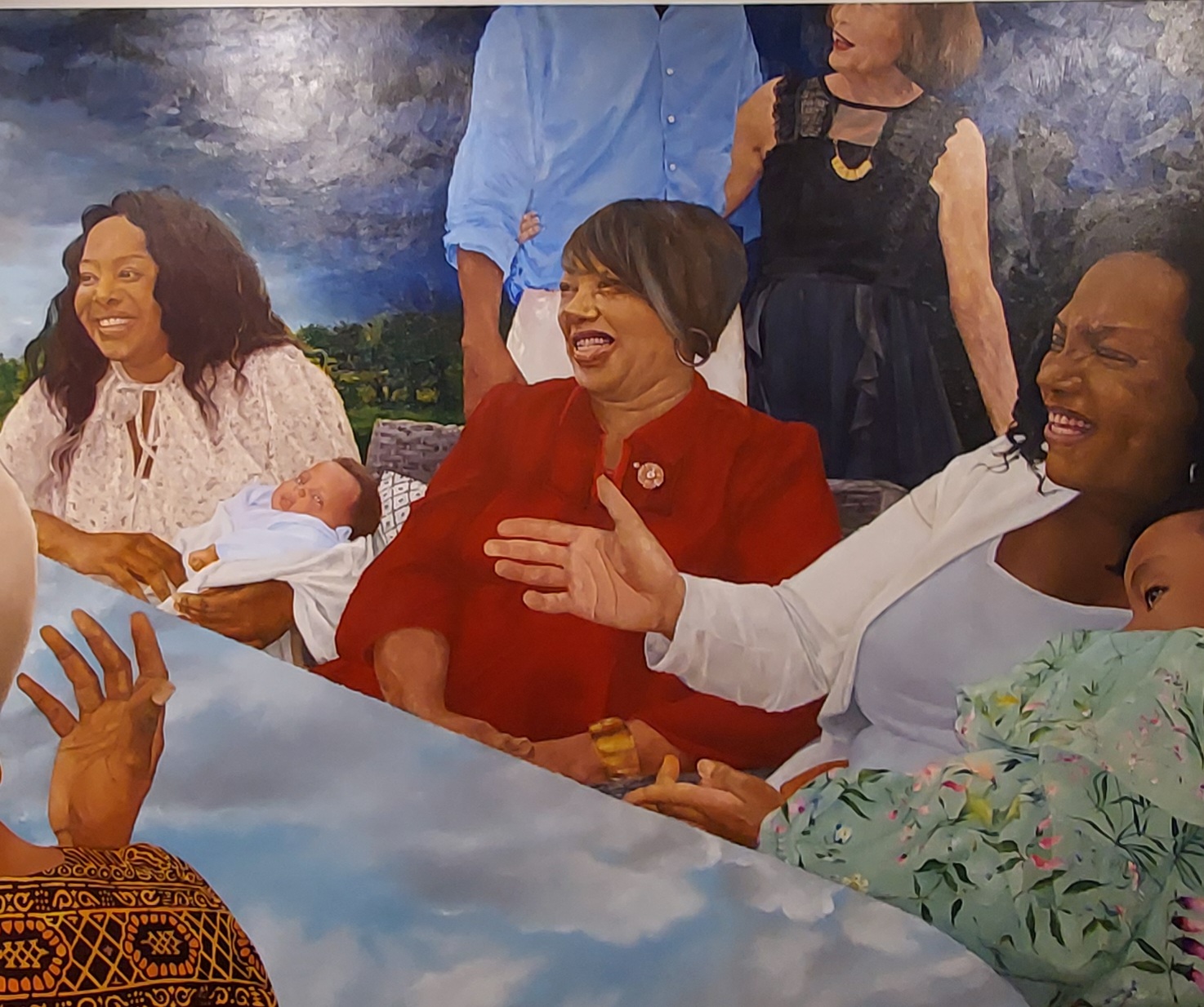 Standing Still at Wolverhampton resonates closely with earlier family-focused portraiture series by Palmer – such as “Baby Shower” (2017/18) and “In Between Black and White” (2018), both presented at the James Hockey and Foyer Galleries, University for the Creative Arts, as part of the artist’s solo exhibition Eugene Palmer: Didn’t It Rain: New Paintings (UCA Farnham, Surrey, 2018).