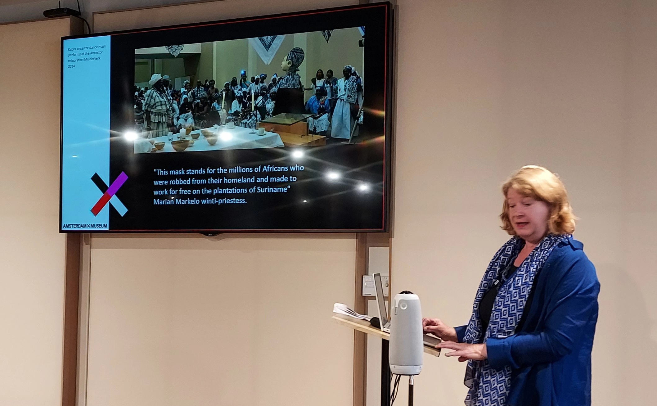 The highlight of Day 1 was hearing curator Peggy Brandon discuss the collaborative work that has been in development since 2017 to establish a National Slavery Museum in the Netherlands. In her senior curatorial role as one of the three research and development co-ordinators she was able to share some of the interim outcomes of extensive public consultations (which are ongoing) that have resulted in the following range of prioritisations: