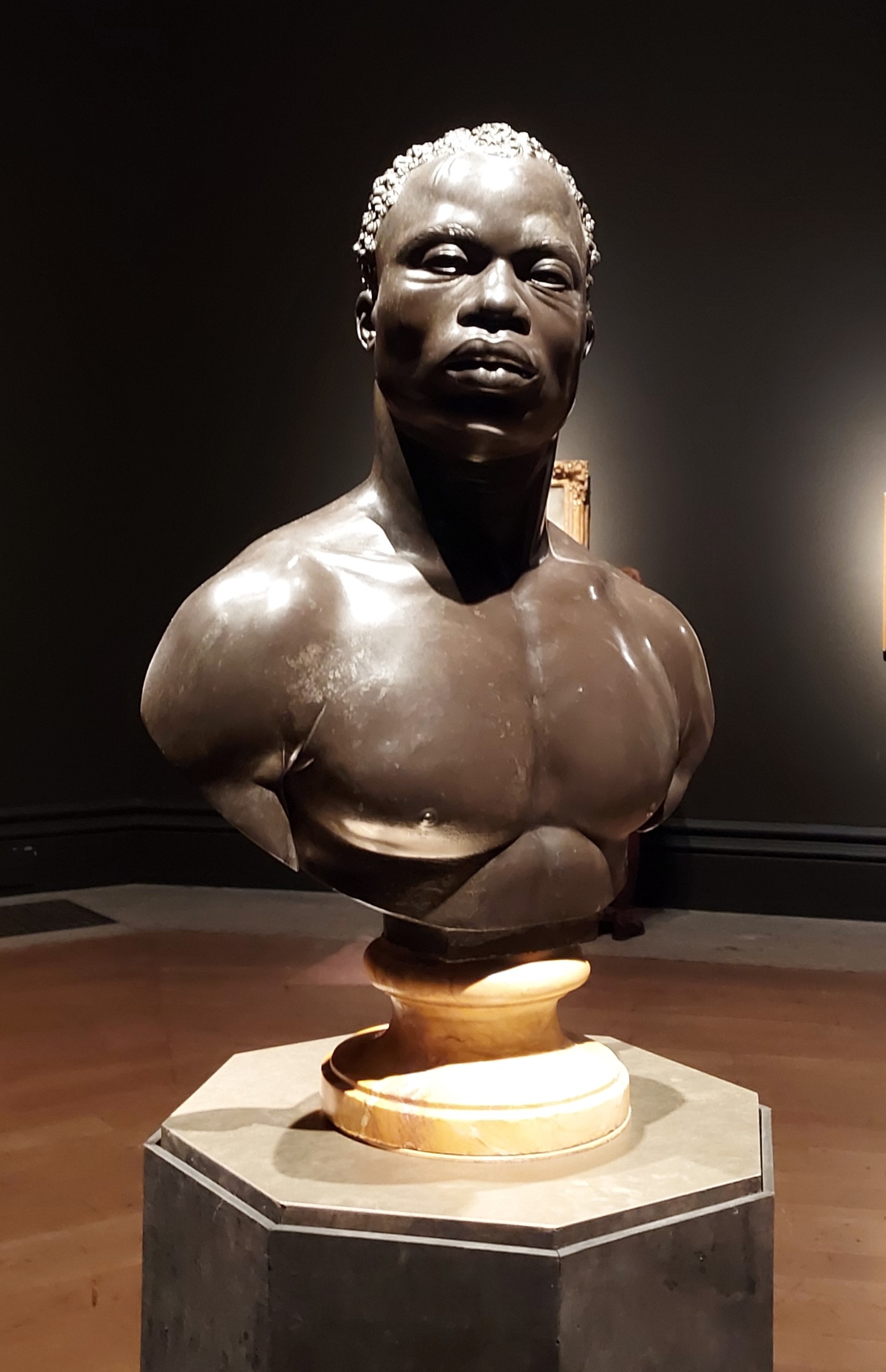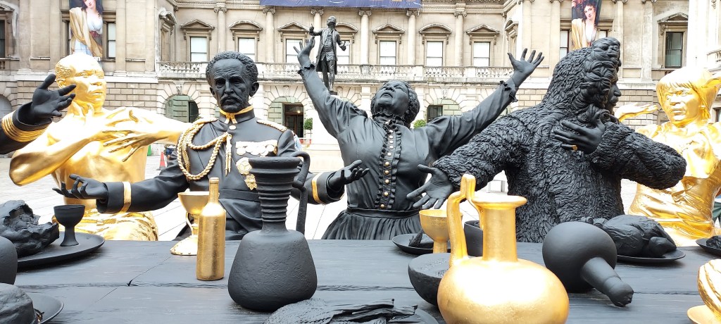 Tavares Strachan’s decision to choose twelve, inter-generationally and internationally significant characterisations of pioneering figures with African heritage – drawn from all the centuries in focus in the exhibition, and also the globally dispersed African diaspora – meant that this bold, life-sized dining scene of a dozen figures, presented in suspended animation, rightly commanded significant mainstream news headlines and generated a multiplicity of re-shares on social media to spotlight the installation as a ‘must see’ piece.