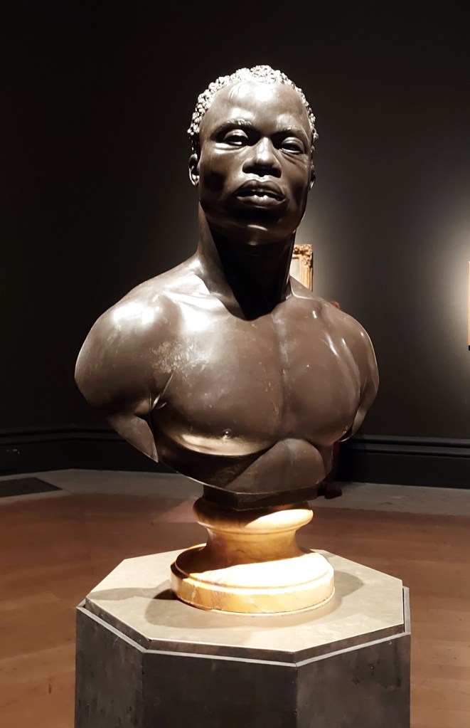 Additionally, the inclusion of original letters written by African-British abolitionist (Charles) Ignatius Sancho (1729-1780), as well as a period copy of formerly enslaved African American writer Phillis Wheatley’s 18th century book of poems (the first poetry collection to be published in Britain by a Black woman, in 1773) were some of the most important text-based exhibits displayed on loan from the British Library’s collections, which helped to contextualise and augment the RA’s visual presentation. These rare and immeasurably precious anti-enslavement narratives, penned by Black men and women decades before the abolition movement achieved mainstream momentum, also served to foreground the agency and epistemic authority of pioneering scholars of colour in the long struggle to bring the nefarious trans-Atlantic trade and plantation-based enslavement to an end.