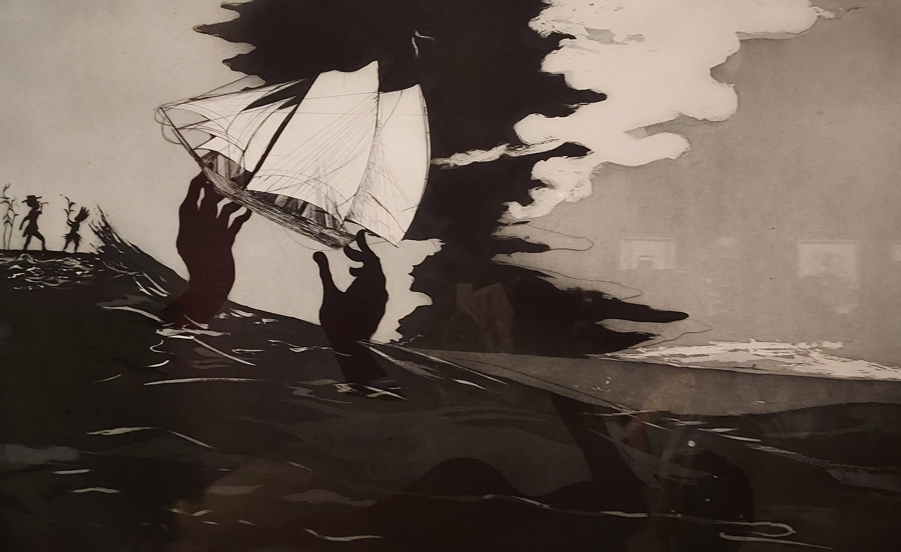 The concluding galleries focused on a selection of contemporary visual artworks curated by Rose Thompson that reference the powerful significance of bodies of water and trans-oceanic journey-making – by force, but also by choice – in our generational stories of migration, re-location and diaspora formation. The geo-political and socio-cultural dynamics of these overseas movements represented in this montage of works (below) helped me to appreciate the physical force, the spatio-temporal significance, and the emotional and affective power of water crossings.