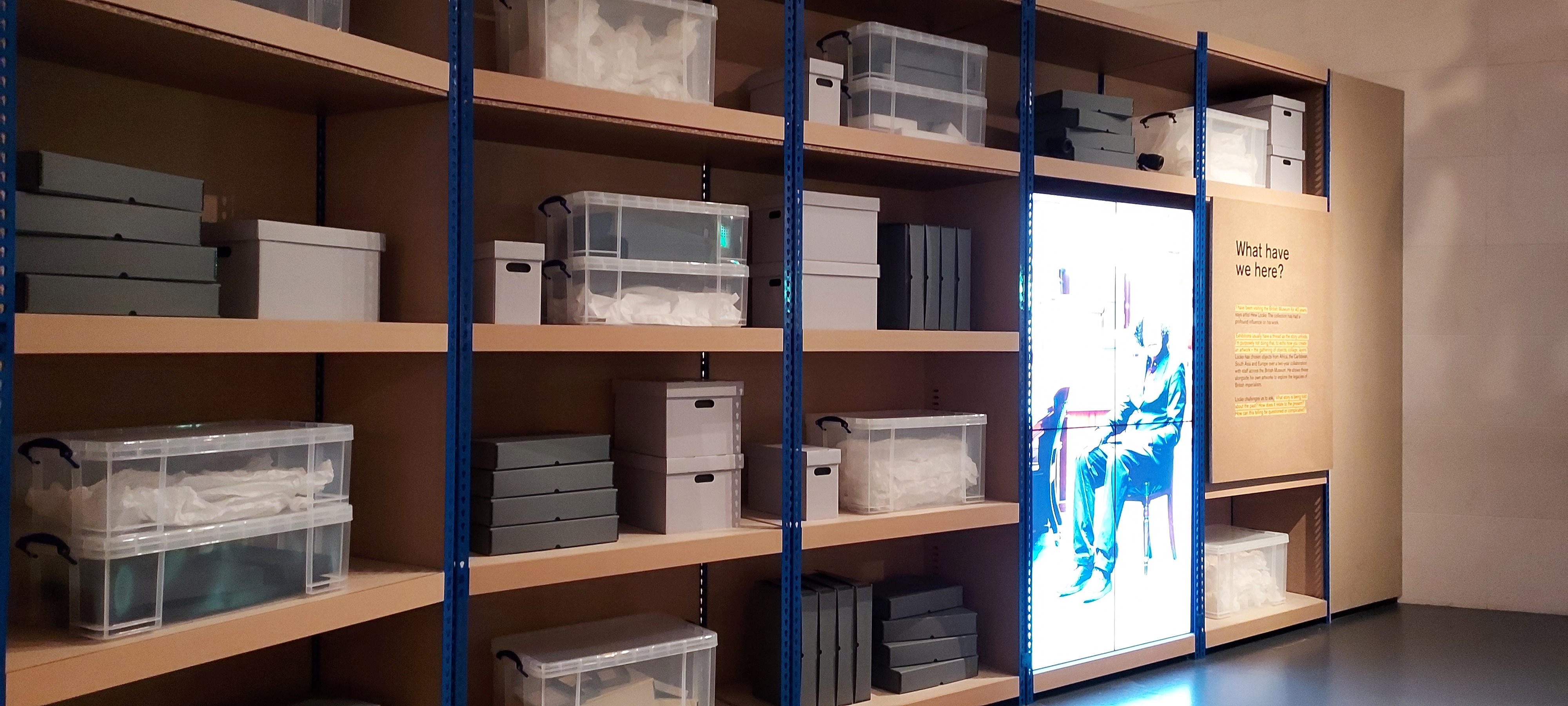 Significantly, the stack of archival storage boxes and crates on the adjacent shelves served to illustrate that this showcase had emerged from more than two years of exploratory research at the British Museum and other institutions, and represented an ever-unfinished process of historical (re-)discovery, revision and decolonial critique. It felt as though visitors were being invited to join in with the unpacking and re-interpretation processes, thus reinforcing an expectation of active, inquisitive engagement with the objects as opposed to passive spectatorship.