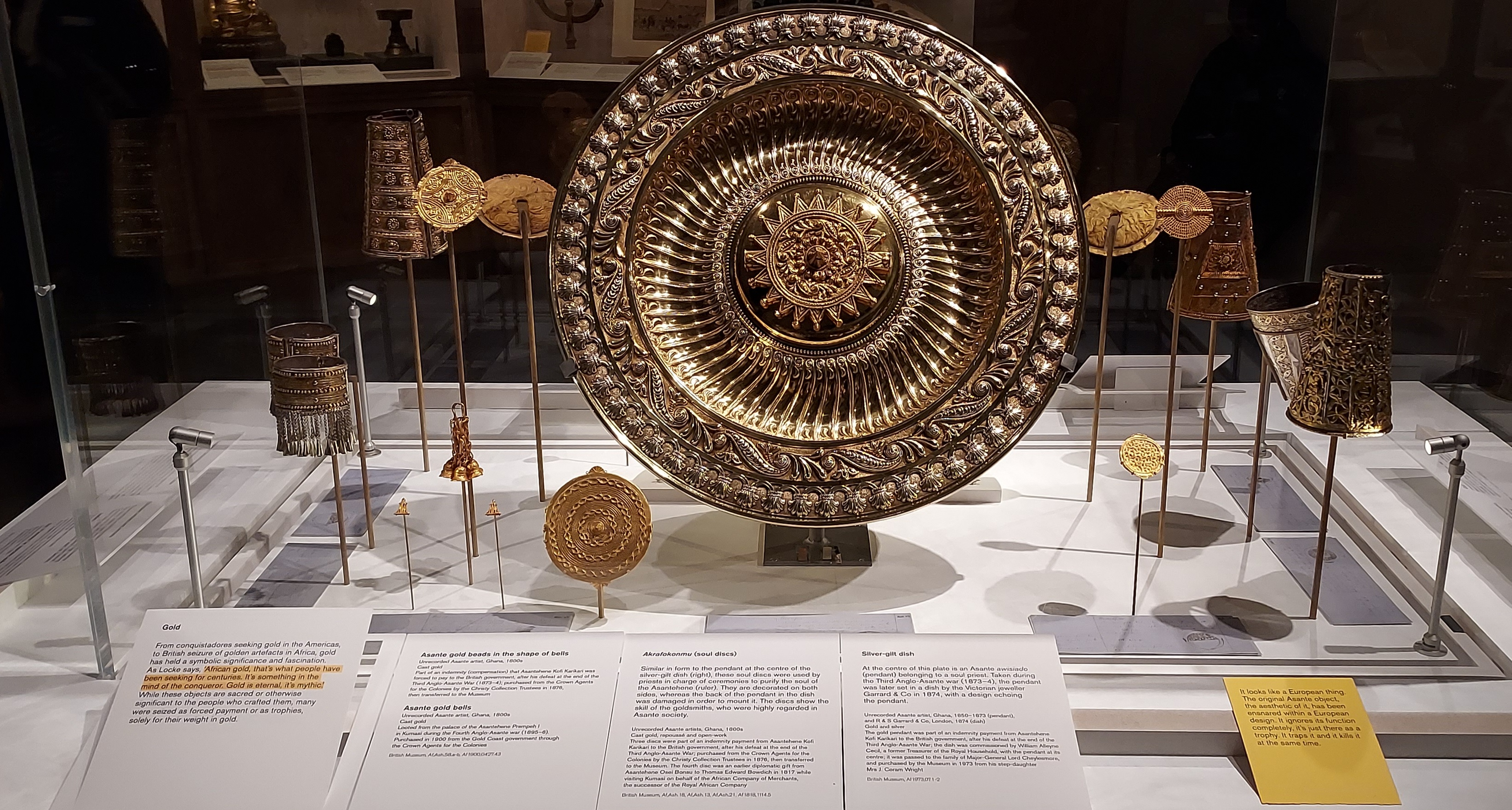 This review follows the curators’ sequencing of the featured exhibits into six thematic sections (Introduction; Sovereigns; Trade; Conflict; Treasure; Epilogue), with each examining the complexities of Empire through the juxtaposition of old and new culturally significant objects. With a particular focus on both guest curators’ diasporic connections to the Caribbean region, continental Africa and Asia, the interpretation narrative drew upon philosophies sourced from the global majority world, including the Ghanaian/Akan principles of “Sankofa” (which translates as “go back and fetch it,” and is traditionally symbolised as a mythical bird with its head facing backwards), to encourage lessons to be learned from the past.