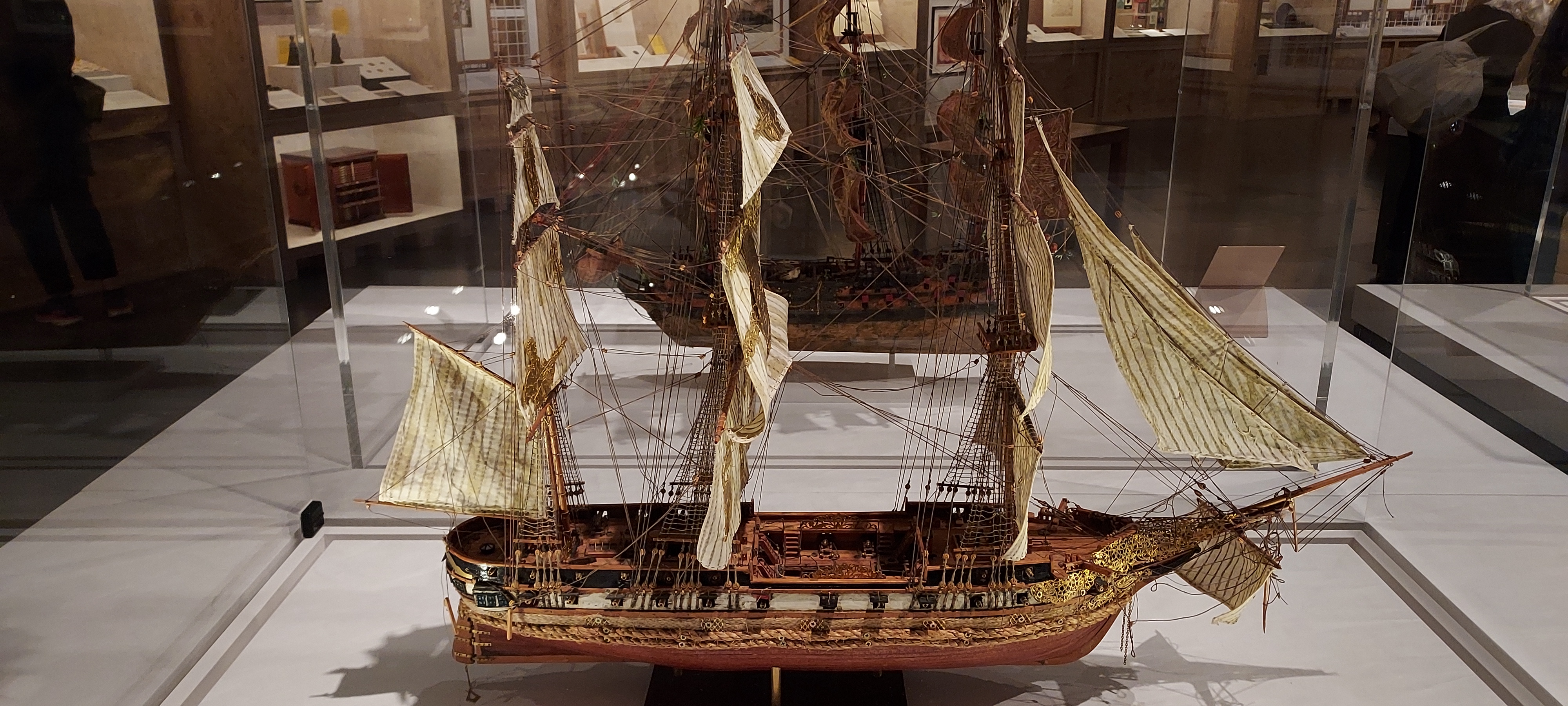 These storyful objects were followed by a digital screen, prominently positioned on the corner of the next display case, where visitors came face-to-face with artist-curator Hew Locke sharing a recorded, piece-to-camera overview of his approach to undertaking the collections-based research and new artistic commissions for this exhibition.